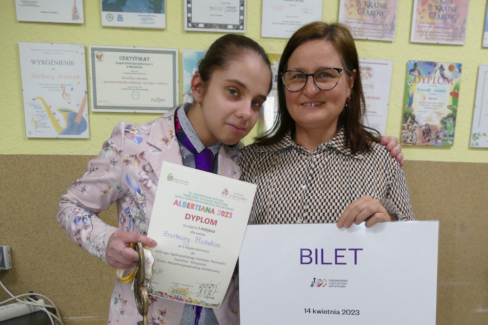 Barbara Habdas, uczennica Zespołu Szkół Specjalnych nr 1 im. ks. Jana Twardowskiego w Mikołowie-Borowej Wsi, zwyciężyła w kategorii solistek tegorocznego Ogólnopolskiego Festiwalu Twórczości Teatralno-Muzycznej Osób z Niepełnosprawnością Intelektualną „Albertiana”.