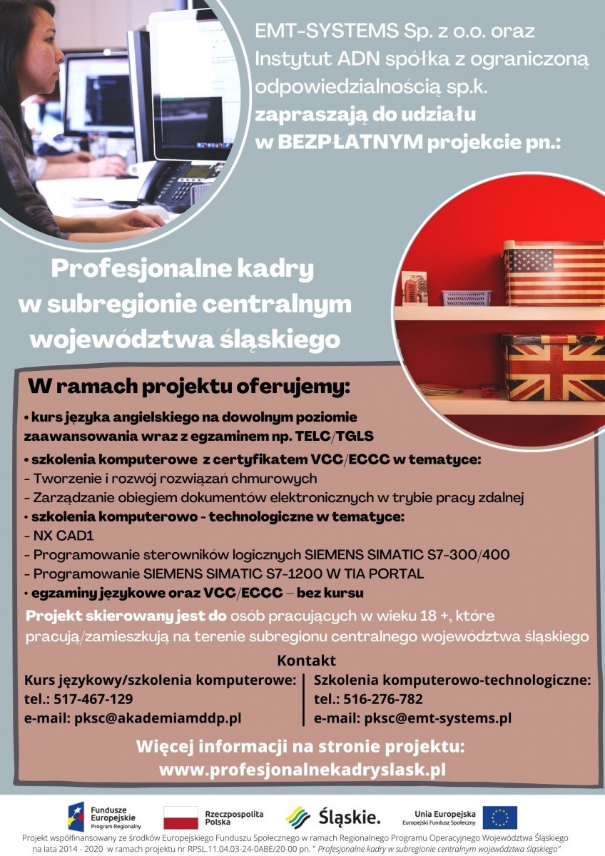 Na zlecenie Wojewódzkiego Urzędu Pracy w Katowicach firma MDDP Akademia Biznesu Projekty realizuje BEZPŁATNE szkolenia komputerowe dla osób mieszkających i/lub pracujących na terenie subregionu centralnego województwa śląskiego i nieprowadzących jednoosobowej działalności gospodarczej.