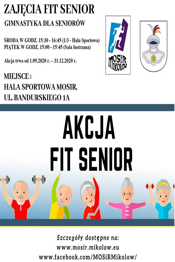 Uczestnicy muszą posiadać strój sportowy i obuwie zmienne. Gimnastyka ogólnokondycyjna w ramach akcji Fit Senior odbywać się będzie w każdą środę w godzinach 15.30 -16:45 (1/3 Hala Sportowa) i w piątek w godzinach 15.00 – 15:45 (Sala Lustrzana w Hali Sportowej MOSiR). Akcja trwa od 01.09 – 31.12.2020 r.