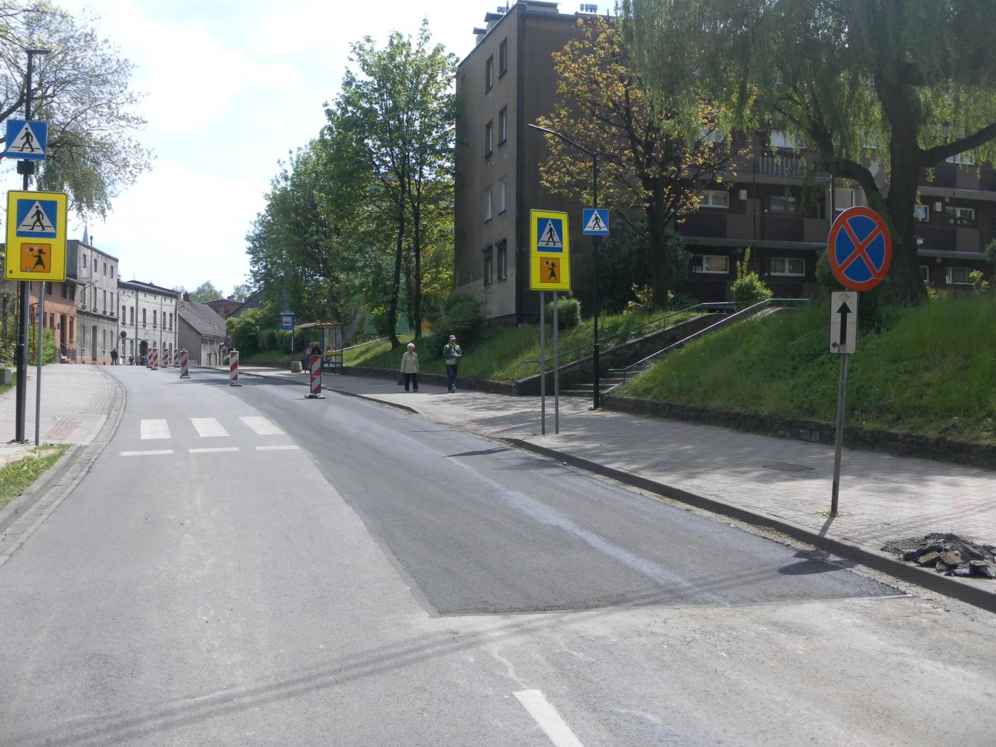 Zgodnie z wcześniejszymi zapowiedziami Mateusza Handla zastępcy burmistrza, rozebrany został już szpecący to miejsce mur oporowy i stare ogrodzenie, które zostanie zastąpione nowym. Powstaną tu nowe chodniki i nowa asfaltowa nawierzchnia. Inwestycja powinna zostać zakończona do 30 czerwca.