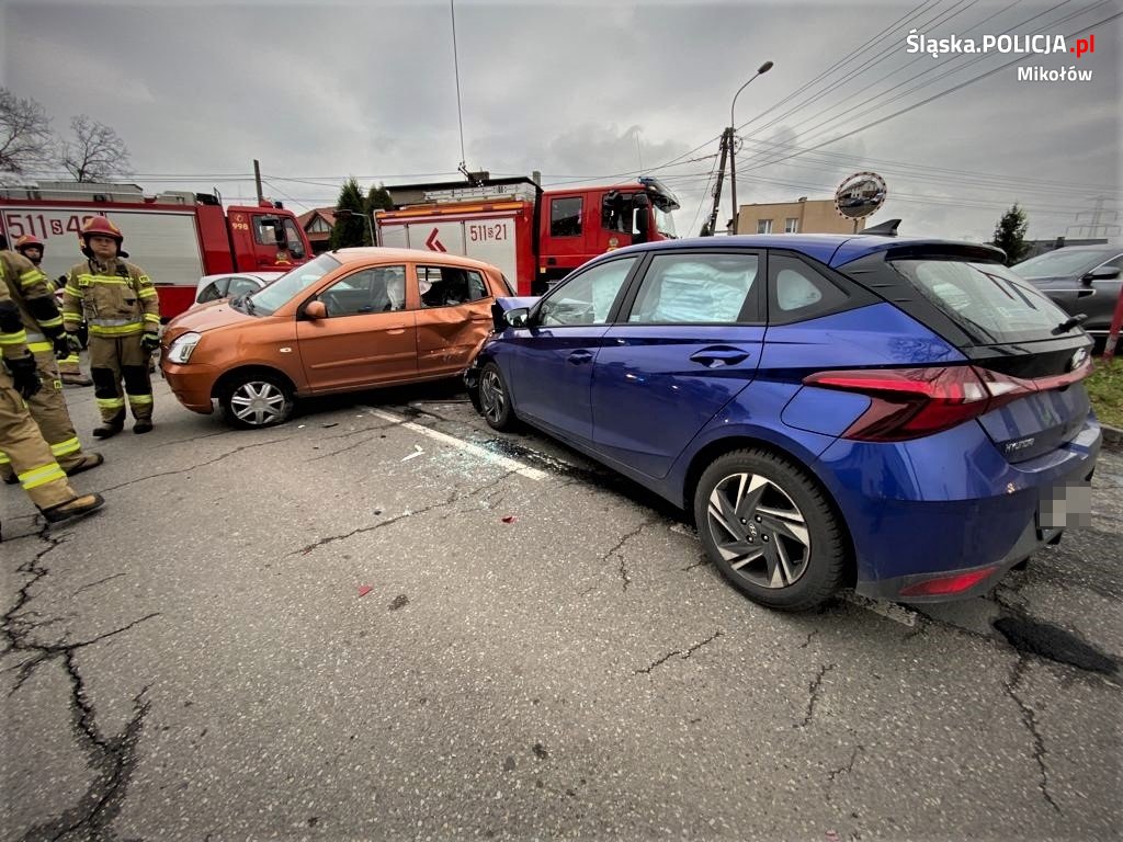 [Film] Kolizja z udziałem trzech pojazdów w Mikołowie! Kierująca zignorowała znak “STOP”