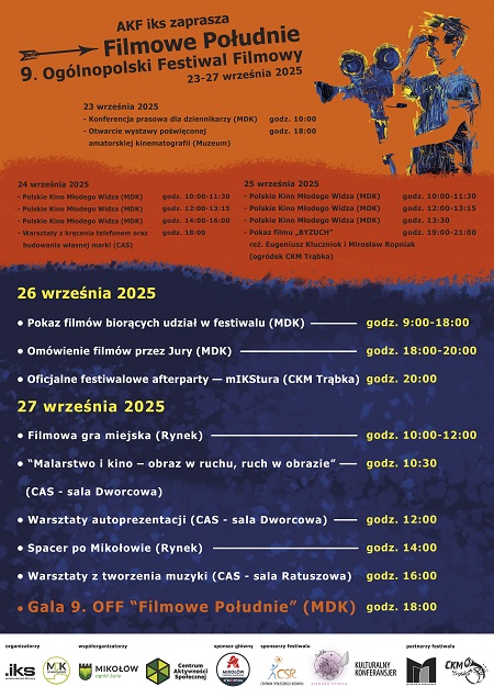 Od 23 do 27 września 2025 r. Mikołów stanie się filmową stolicą południa Polski. Przed nami 9. Ogólnopolski Festiwal Filmowy „Filmowe Południe” – wydarzenie łączące kino niezależne, warsztaty, spotkania i twórcze działania w przestrzeni miejskiej.
