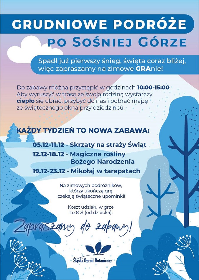 Od soboty 5 grudnia Śląski Ogród Botaniczny zaprasza Was do udziału w zimowej zabawie na Sośniej Górze.