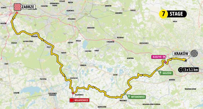 Trasa etapu siódmego zakończy się na krakowskich Błoniach, gdzie zostaną udekorowani najlepsi uczestnicy wyścigu.