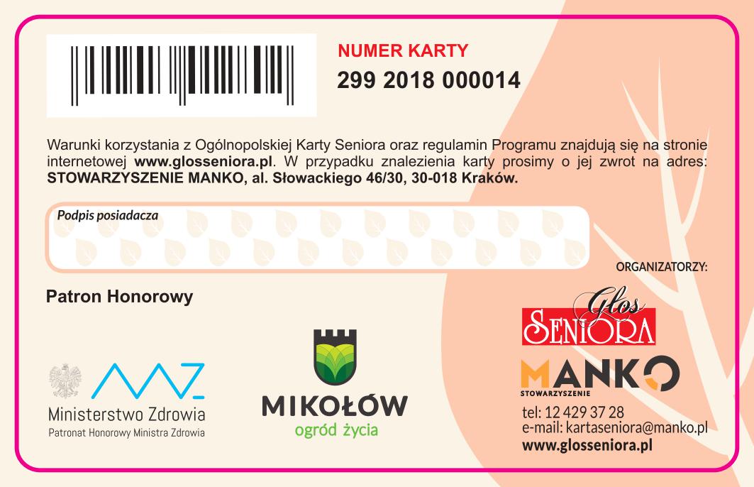 „Karta Seniora” to projekt o zasięgu ogólnopolskim, realizowany przez krakowskie Stowarzyszenie „MANKO”.