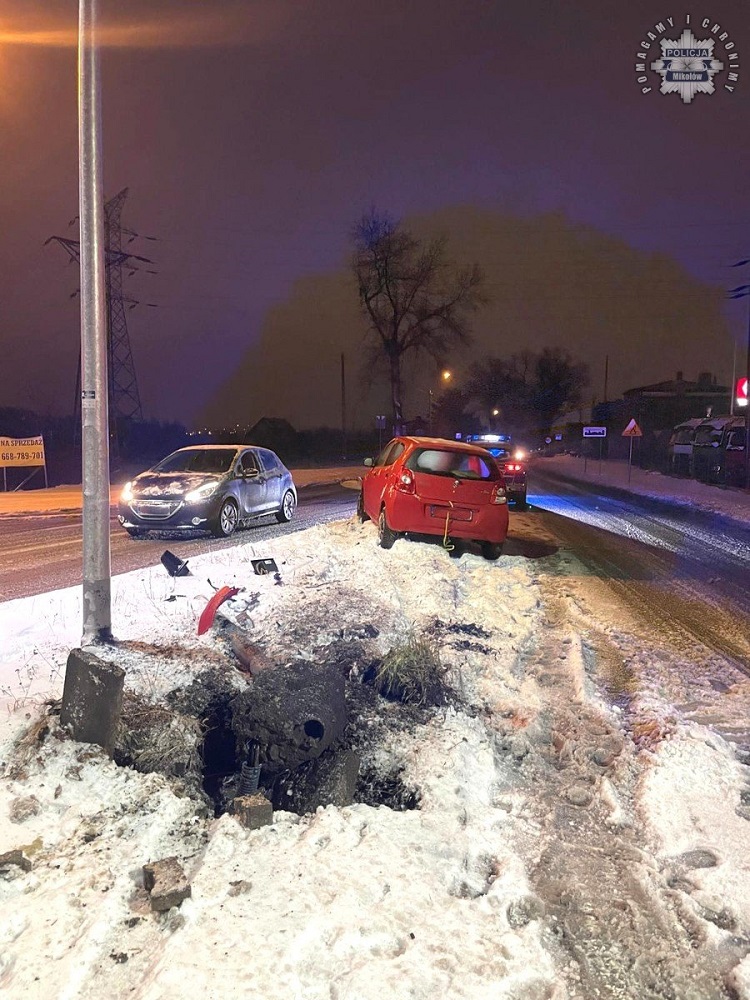 Kolizja w Mikołowie. Pijany kierowca zakończył podróż na sygnalizatorze