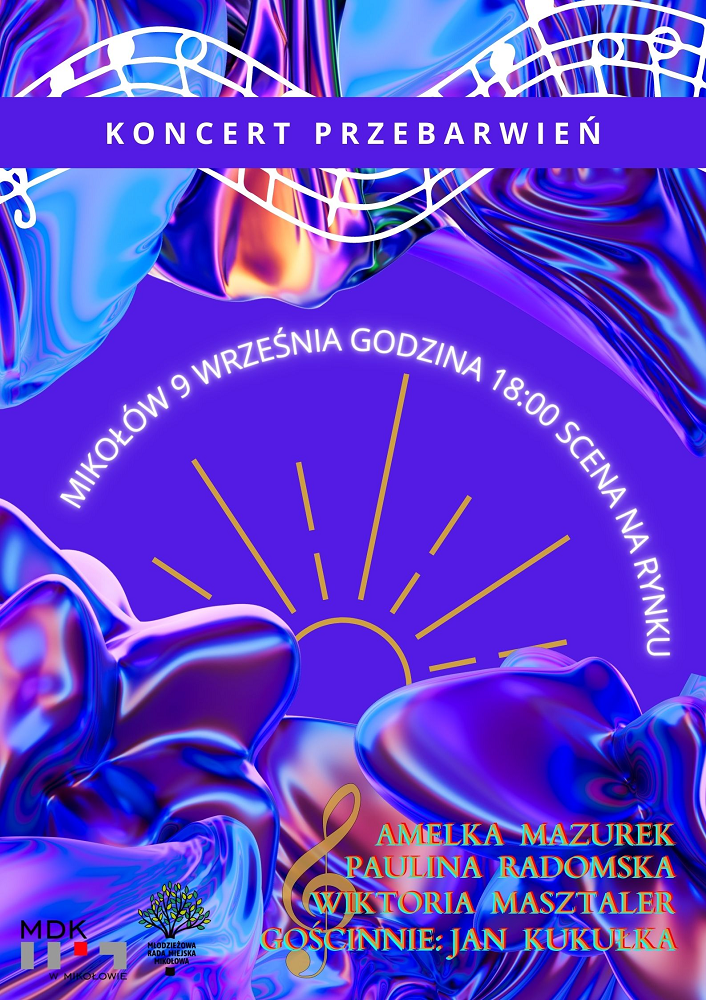 Miejski Dom Kultury w Mikołowie wraz z Młodzieżową Radą Miasta Mikołowa zaprasza w piatek 9 września o godz. 18.00 na mikołowski Rynek, gdzie niesamowity koncert zagra zespół “Przebarwienia”.