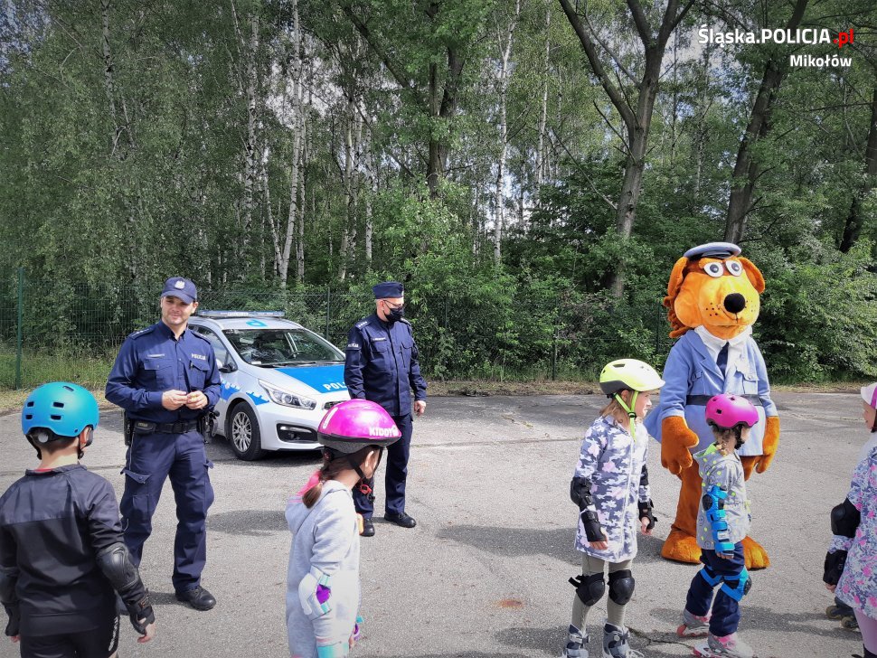 Policjanci powiatu mikołowskiego, wzorem lat ubiegłych, prowadzą różnego rodzaju zajęcia profilaktyczne z mieszkańcami. Wczoraj mundurowi z Komisariatu Policji w Łaziskach Górnych, wraz z policyjną maskotką, sierżantem Hektorem, wybrali się na jeden z obiektów Miejskiego Ośrodka Sportu i Rekreacji, gdzie dołączyli do grupy młodych rolkarzy. Uczestnicząc w spotkaniu, respektując obowiązujące zasady sanitarne, przekazali kilka dobrych rad, które z całą pewnością wpływają na bezpieczeństwo nie tylko w okresie letnim. Zajęcia poprowadził dzielnicowy asp. Paweł Oleksiński oraz zastępca komendanta komisariatu, podkom. Dariusz Kasperek, który sam założył rolki. Policjanci zwrócili uwagę na potrzebę wyposażenia nie tylko w kask oraz ochraniacze na łokcie i kolana w tego rodzaju sporcie, ale także i elementy odblaskowe, które w każdym przypadku poprawiają widoczność na drodze. Dzielnicowy podkreślał, że czas wakacji to z całą pewności moment na odetchnięcie od codziennych obowiązków, jednak od zasad bezpieczeństwa wakacji nie powinno być nigdy!
