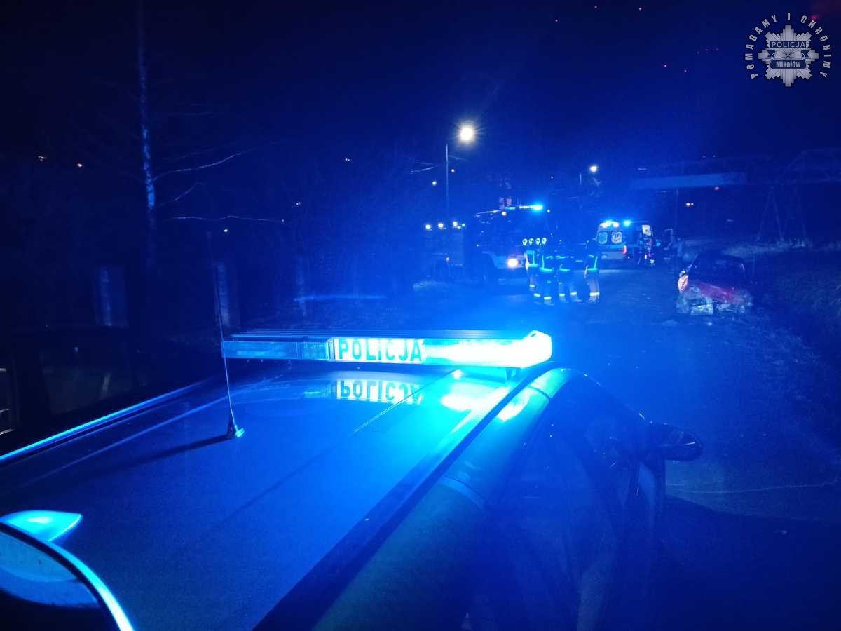 Jak ustalili funkcjonariusze, 34-letni kierowca z Mikołowa nie dostosował prędkości do warunków na drodze, w wyniku czego stracił panowanie nad pojazdem, który dachował. Na szczęście zarówno kierowca, jak i pasażer nie odnieśli poważnych obrażeń.