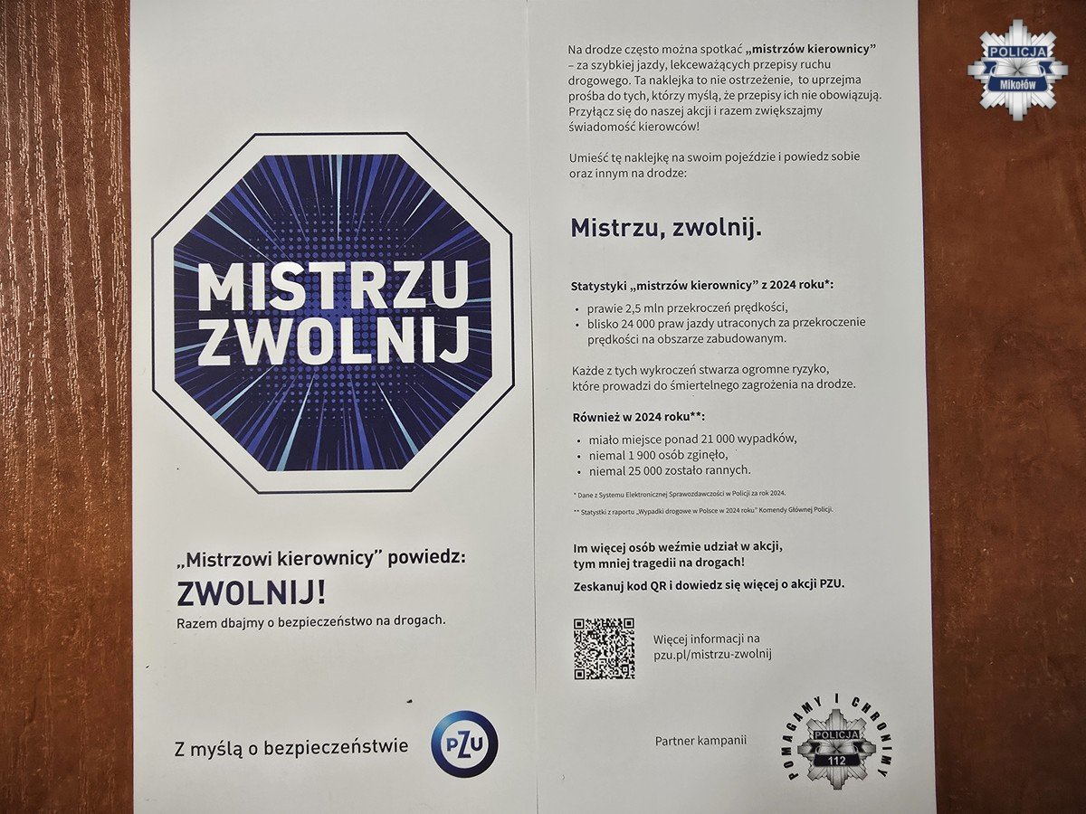 Kampania „Mistrzu, zwolnij” ma na celu zwiększenie bezpieczeństwa na mikołowskich drogach i zachęcenie kierowców do odpowiedzialności. Wszyscy uczestnicy ruchu drogowego – niezależnie od wieku i doświadczenia – powinni pamiętać, jak ważna jest ostrożność na drodze.