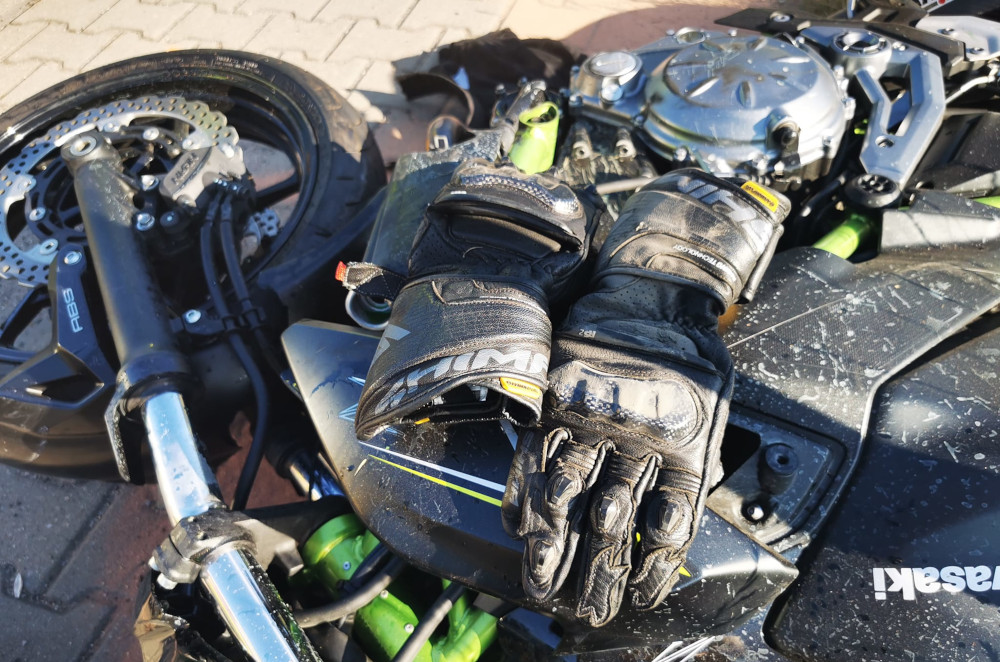 Motocyklista uderzył w osobówkę w Gostyni. 23-latka do szpitala zabrał śmigłowiec LPR