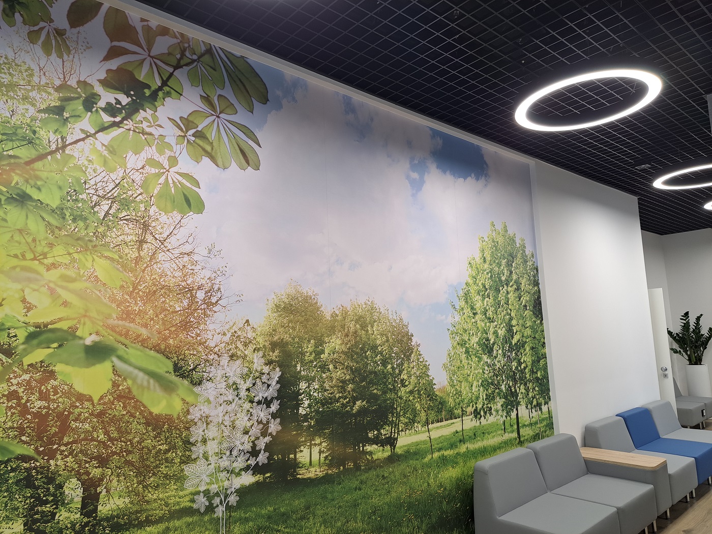 W zmodernizowanym oddziale PKO Banku Polskiego nie ma tradycyjnych ulotek i plakatów – najważniejsze informacje o bieżącym funkcjonowaniu oddziału wyświetlane są na ogólnodostępnych ekranach. Większość czynności klienci mogą wykonać w asyście doradców na ekranach dotykowych lub wykorzystując swoje smartfony. Takie rozwiązania pozwalają ograniczyć konieczność wydruków papierowych, co ma bezpośredni wpływ na ekologię i ochronę środowiska. Placówka została wyposażona w stanowisko internetowe, przy którym klient samodzielnie lub z pomocą doradcy może wykonać niezbędne operacje. Dzięki temu rozwiązaniu klienci mogą nauczyć się korzystania z kanałów zdalnych. Wystrój wnętrza ocieplają liczne akcenty roślinne – donice z kwiatami oraz fototapeta regionalna przedstawiającą kasztanowce, co nawiązuje do widoków, jakie można zobaczyć w Śląskim Ogrodzie Botanicznym w Mikołowie.