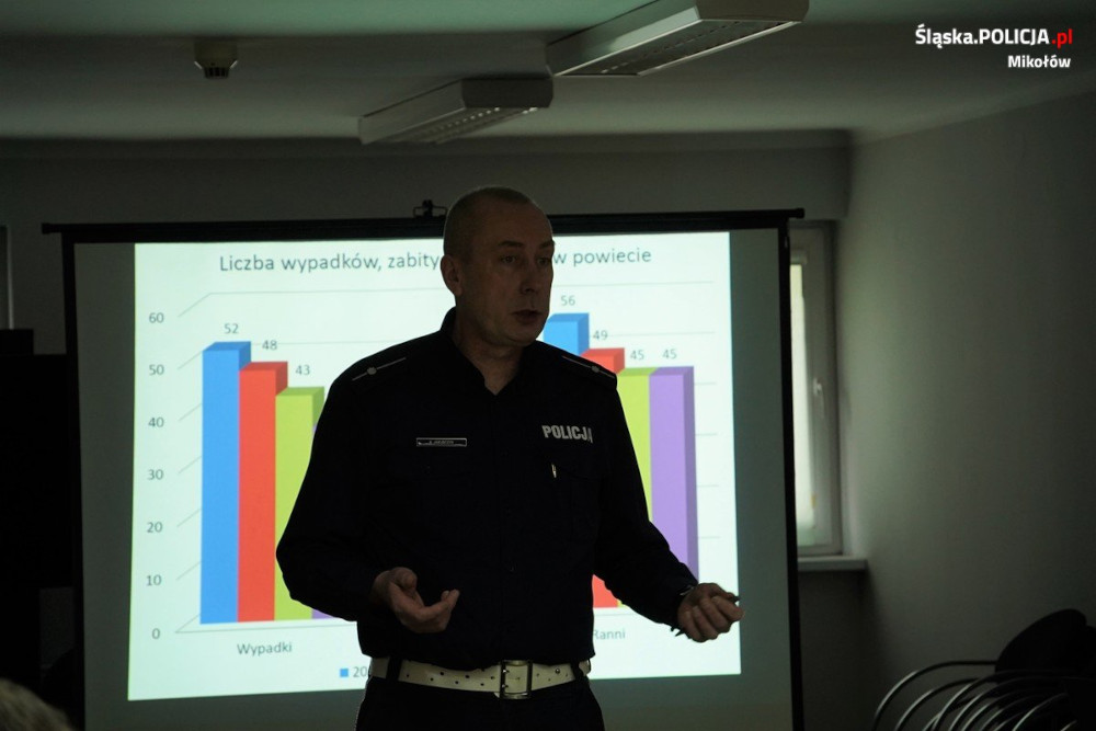 Tego samego dnia spotkali się policjanci mikołowskiej drogówki. Odprawę przeprowadził naczelnik nadkom. Lucjan Kret oraz jego zastępca mł.asp. Adam Jakubczyk. Policjanci omówili stan bezpieczeństwa na drogach całego powiatu. W ubiegłym roku mundurowi odnotowali 37 wypadków (w tym 4 ze skutkiem śmiertelnym) i 890 kolizji, ujawnili 205 nietrzeźwych kierujących. W Wydziale prowadzone były różnego rodzaju wzmożone działania: np. “Bezpieczny pieszy”, “Prędkość”, “NURD”, “Smog”, czy “Bezpieczne skrzyżowania”. Mundurowi zabezpieczyli też szereg imprez sportowych, takich jak Wyścig Solidarności i Olimpijczyków i Bieg Mikołowski.