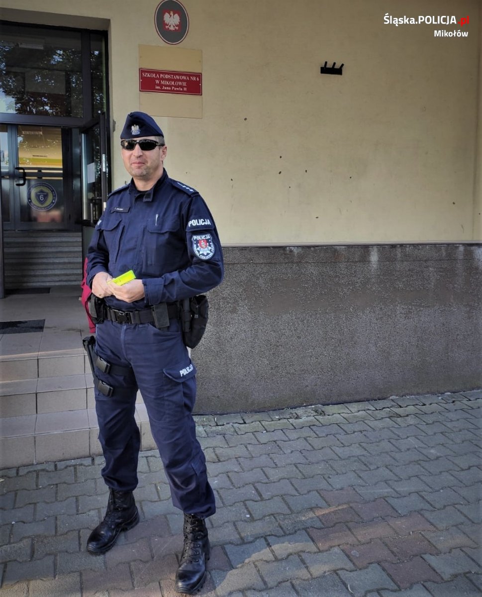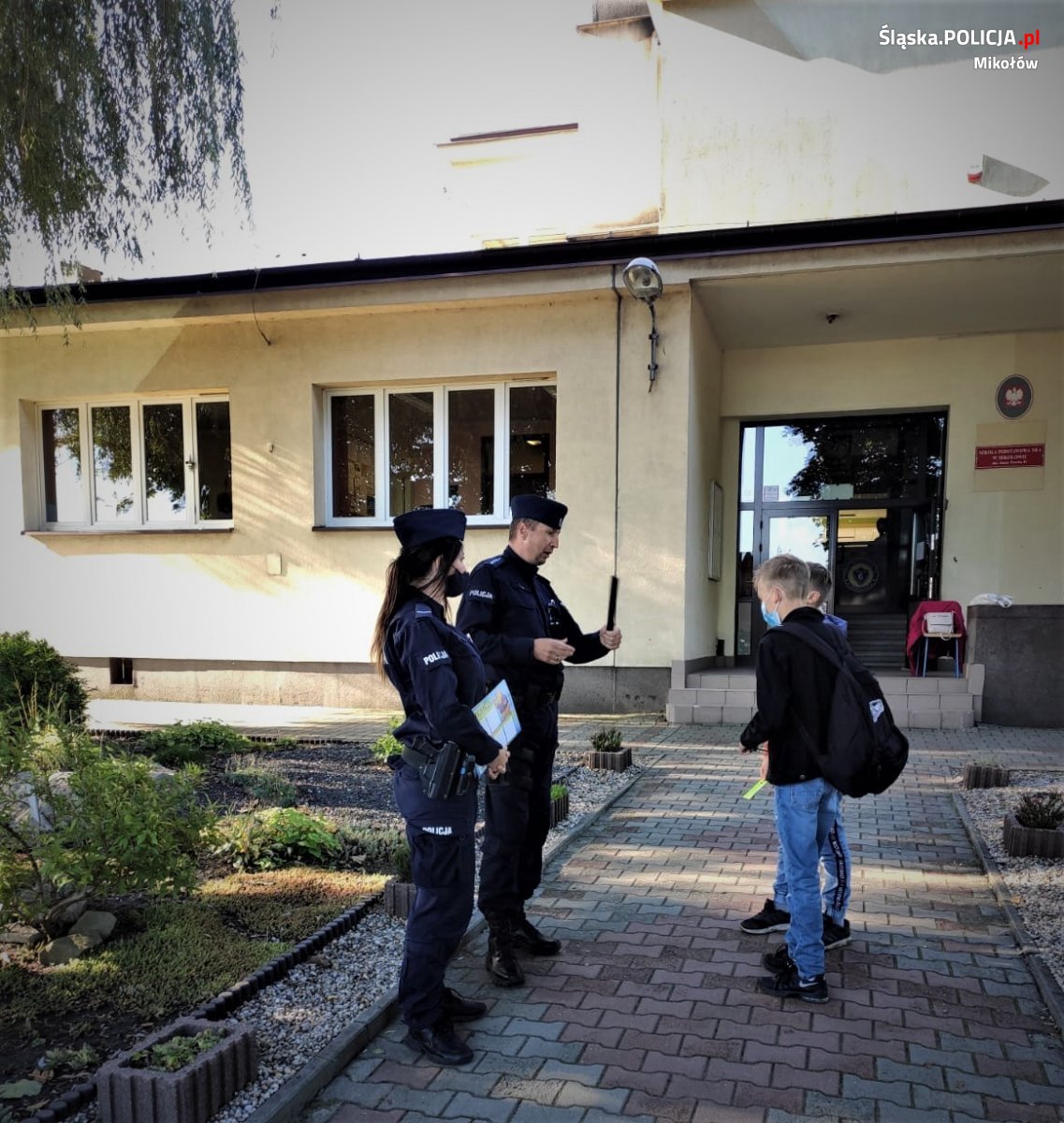 Pierwszy poniedziałek w tym roku szkolnym na szczęście przywitał uczniów słoneczną aurą. O ich bezpieczeństwo w drodze do szkoły zadbali policjanci z miejscowej komendy. Mundurowi realizują bowiem działania, których celem jest uświadamianie młodym mikołowianom, jak w codziennym komforcie podróży ważna jest ciągła uwaga i koncentracja oraz respektowania reguł poruszania się po drodze.