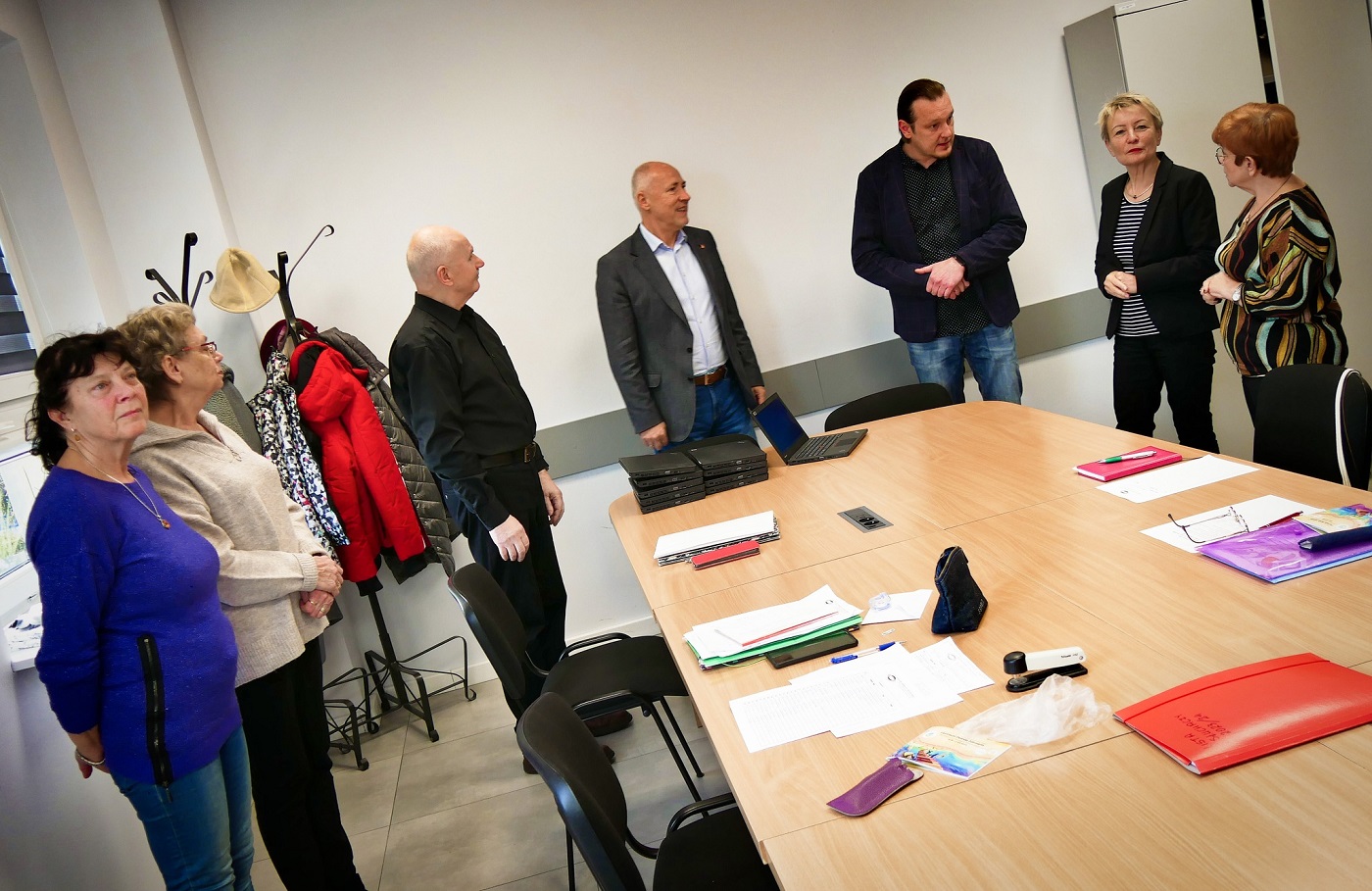 W Starostwie Powiatowym Marii Beczale, dyrektor PUTW oraz członkom Rady Senioralnej sprzęt wręczył starosta mikołowski Mirosław Duży, któremu towarzyszyli członkini Zarządu Powiatu Grażyna Nazar oraz naczelnik Wydziału Informatyki Grzegorz Jarzyna.