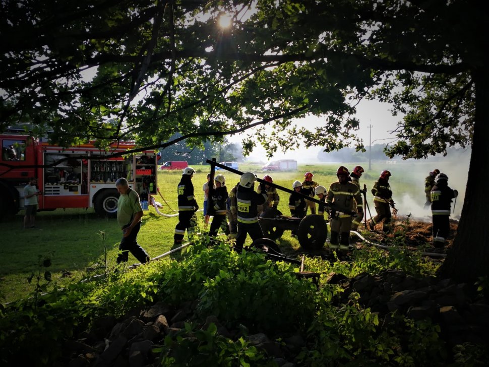 Pożar słomy i wozu konnego w dzielnicy Kamionka