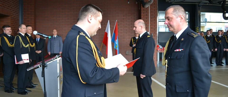 Na początku dowódca uroczystości mł. kpt. Jakub Gendarz złożył meldunek Śląskiemu Komendantowi Wojewódzkiemu Państwowej Straży Pożarnej brygadierowi Jackowi Kleszczewskiemu. Potem nastąpił akt odwołania z powodu przejścia na emeryturę dotychczasowego komendanta starszego brygadiera Dariusza Witkowicza. Zastąpił go młodszy brygadier Damian Krawczyk.
