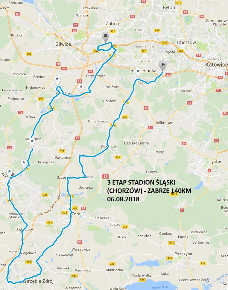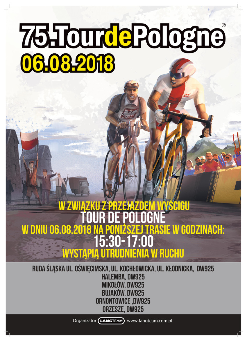 Zapraszamy do kibicowania, jednocześnie informujemy, że zmieniona bedzie organizacja ruchu w mieście. Utrudnienia pojawią się w godzinach od 15:30 do 17:00 na drogach: ul. Oświęcimska DW925, skrz. Z DK44 ul. Przelotowa, Bujaków DW925 (cała DW 925 na odcinku Ruda Śląska, Mikołów, Ornontowice, Orzesze i dalej w kierunku Żory i Jastrzębie Zdrój). Utrudnione będzie też poruszanie się komunikacją miejską w tym czasie.
