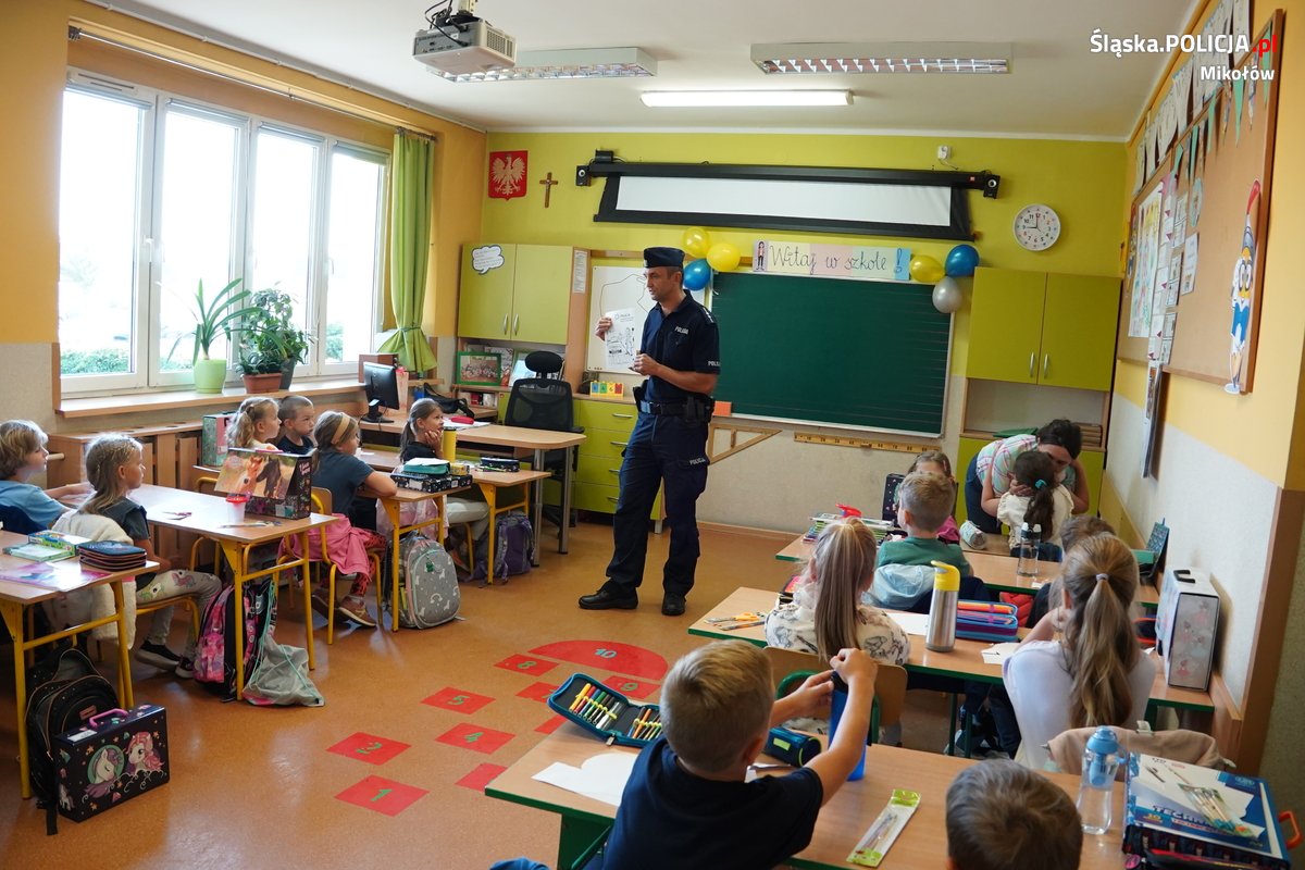 Wczoraj od rana policjanci mikołowskiej drogówki wraz z profilaktykiem pojawili się w rejonie Szkoły Podstawowej nr 6 im. Jana Pawła II w dzielnicy Borowa Wieś. Podczas, gdy jedni kontrolowali prędkość poruszających się DK 44 pojazdów, policjant z Wydziału Prewencji asp. Artur Ceran rozmawiał z uczniami klas pierwszych. Zasady poruszania się po chodniku, przechodzenia przez oznakowane przejścia, zakaz korzystania na “pasach” z telefonu komórkowego oraz poprawa widoczności poprzez noszenie odblaskowych elelementów stały się głównymi punktami dyskusji.