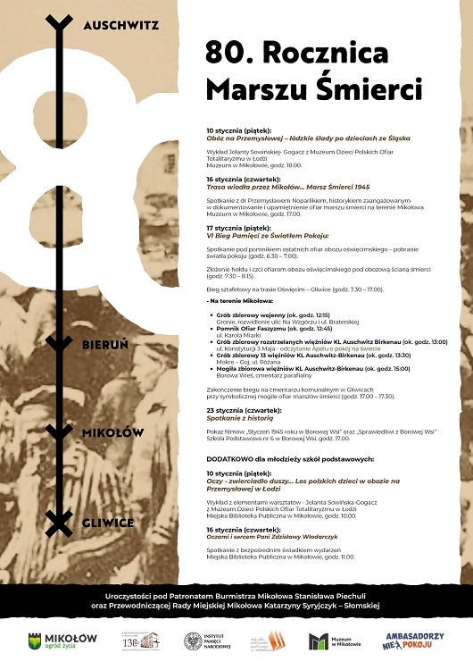 Kulminacyjnym punktem obchodów będzie 17 stycznia, kiedy przez Mikołów przebiegnie sztafeta VI Biegu Pamięci ze Światłem Pokoju. Symboliczne światło połączy uczestników z różnych miast w hołdzie dla ofiar Marszu Śmierci.