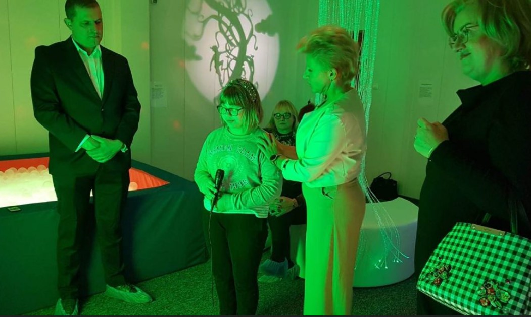 Nasza uczennica Anastazja zaprezentowała gościom, w jaki sposób na zajęciach w szkole można wykorzystać: magicznąścianę, basen z podświetlanymi piłeczkami, kolorową drabinę, panele sensoryczne, kulę plazmową, biały domek sensoryczny, kolumnę bąbelkową, kaskadę światłowodową – wyjaśnia dyrektor szkoły, Jolanta Czekaj.