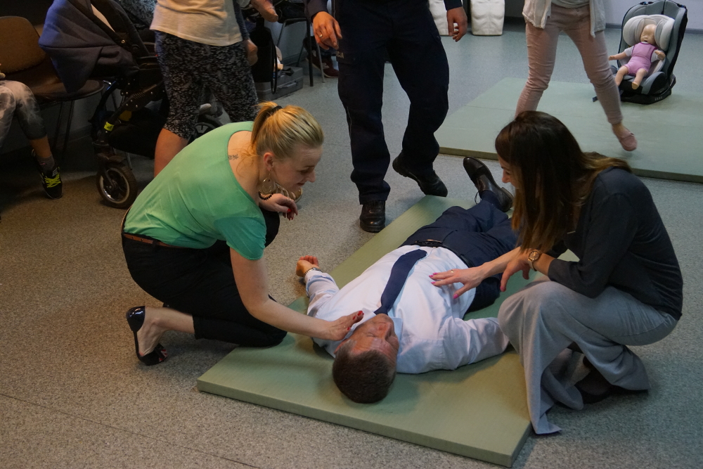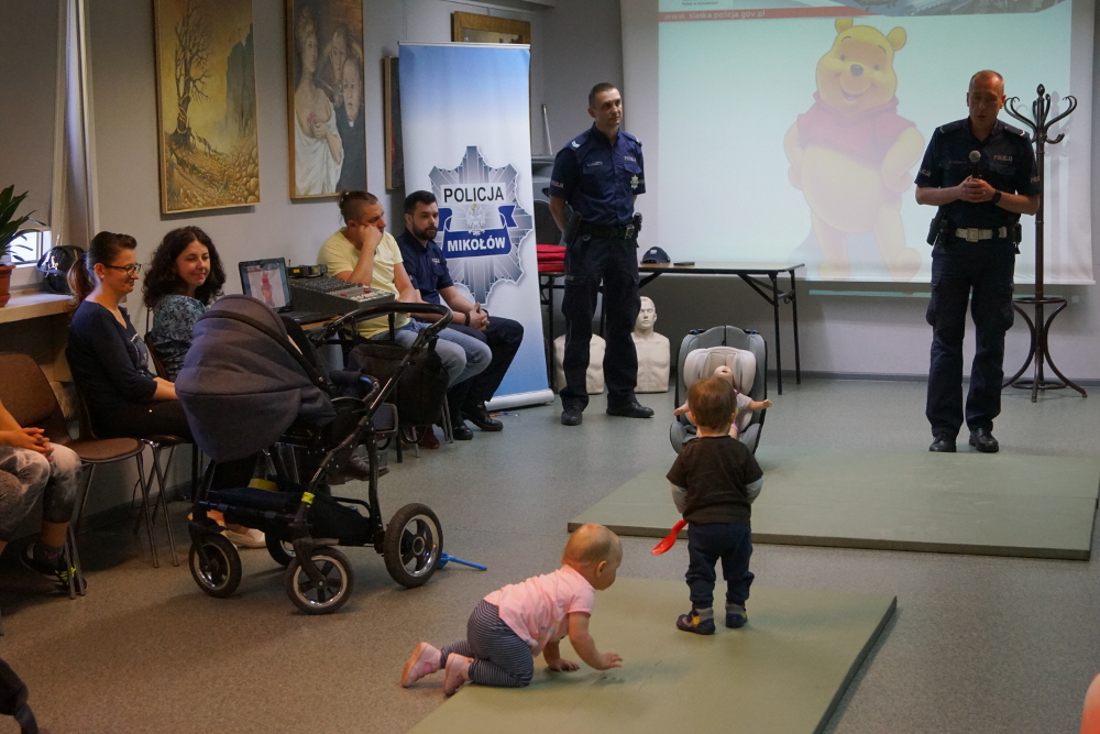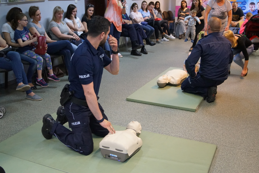 St. sierż. Grzegorz Mecner z Wydziału Doboru i Szkolenia Komendy Wojewódzkiej Policji w Katowicach podczas warsztatów uświadamiał młodych rodziców, jak ważne jest zachowanie spokoju i opanowanie w sytuacji, gdy malec będzie potrzebował natychmiastowej pomocy związanej z zagrożeniem życia np. na skutek zadławienia się pokarmem. W pokazie towarzyszył również policjant z Mikołowa, post. Rafał Szaflarski, który z wykształcenia także jest ratownikiem medycznym. Do dyspozycji uczestników byli także dzielnicowi z Mikołowa: kierownik zespołu, asp. szt. Ireneusz Bocheński oraz sierż.szt. Łukasz Basa.