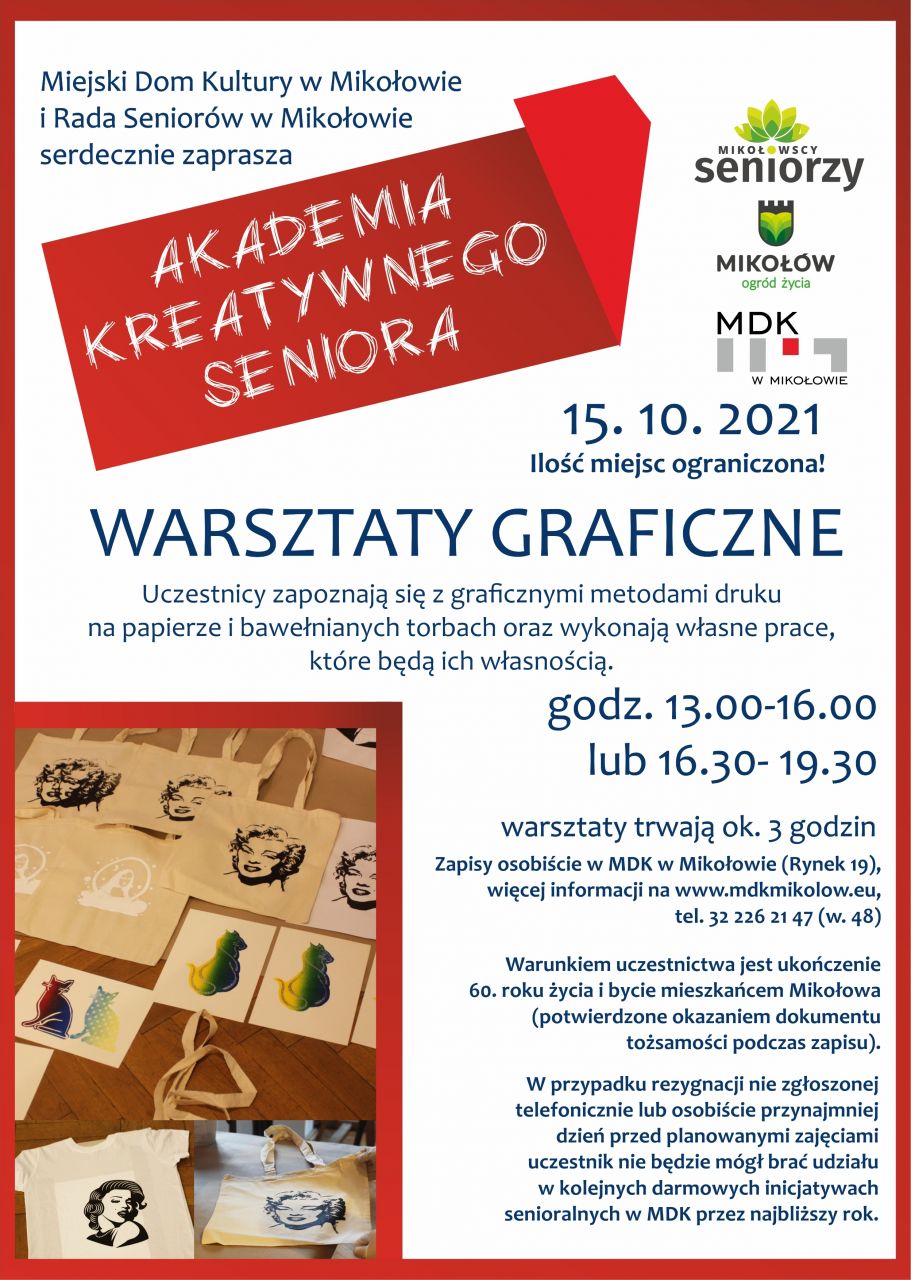 Podczas październikowych warsztatów, tym razem poświęconych grafice, każdy zuczestników pozna dwie techniki: sitodruk i linoryt. Uczestnicy zapoznają się z graficznymi metodami druku na papierze i bawełnianych torbach. Każdy z nich będzie miał okazję wydrukować wcześniej przygotowany, gotowy wzór, jak i własnoręcznie przygotować matrycę graficzną, którą przy pomocy kolorowych farb będzie mógł zadrukowywać bawełnianą torbę, tworząc rzecz absolutnie unikatową i niepowtarzalną! Materiały zapewnia organizator, a wykonane prace będą własnością uczestników.