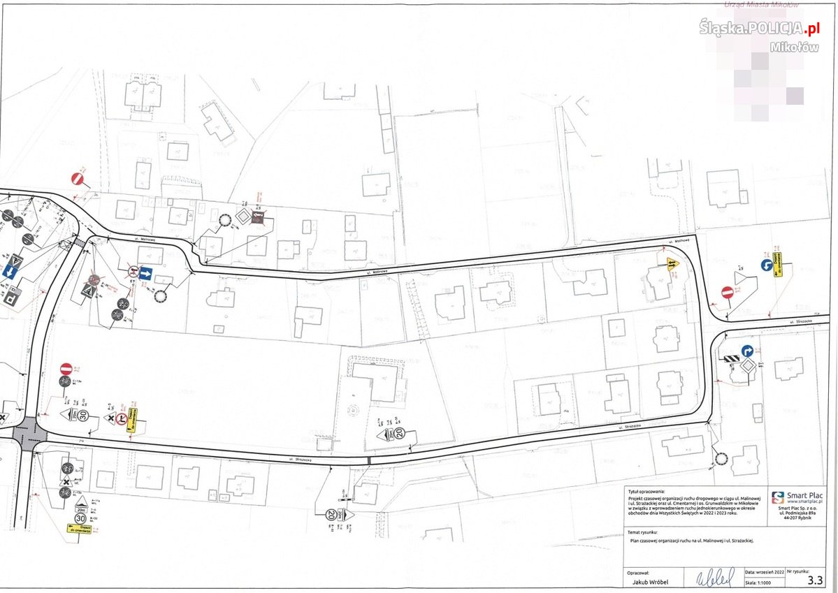 - Wprowadzenie ruchu jednokierunkowego na odcinku ulicy Malinowej i Strażackiej