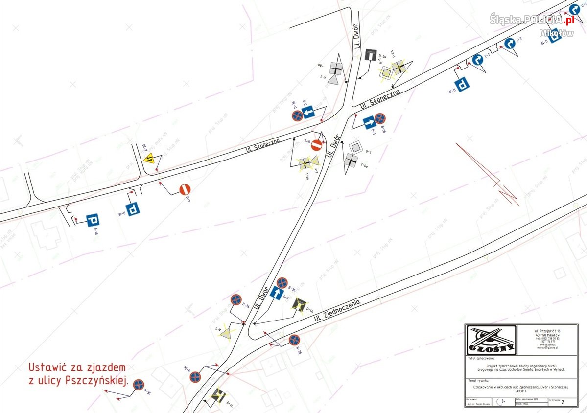 - zmiana nastąpi przy ulicy Zjednoczenia, ulicy Dwór oraz Słonecznej