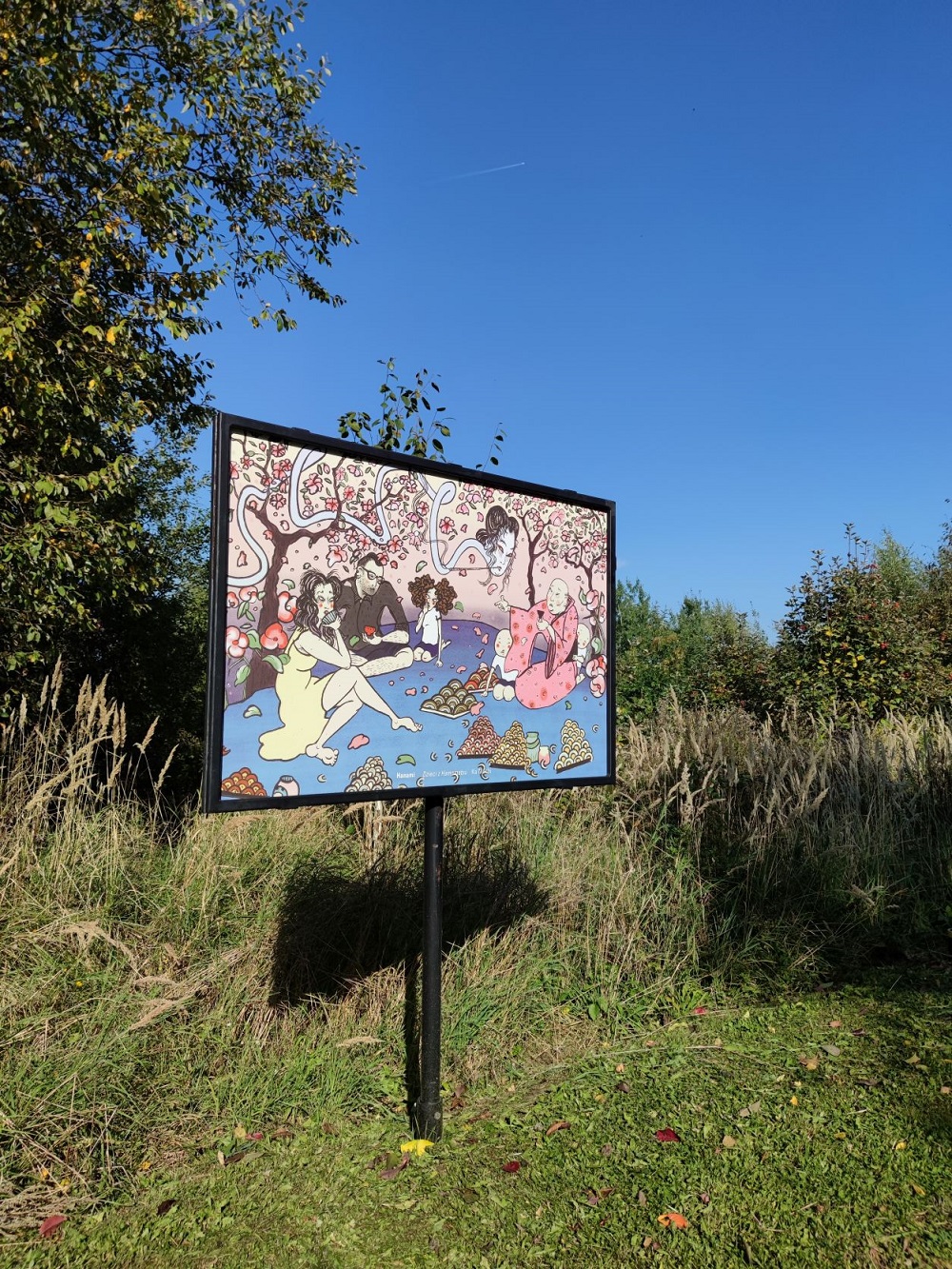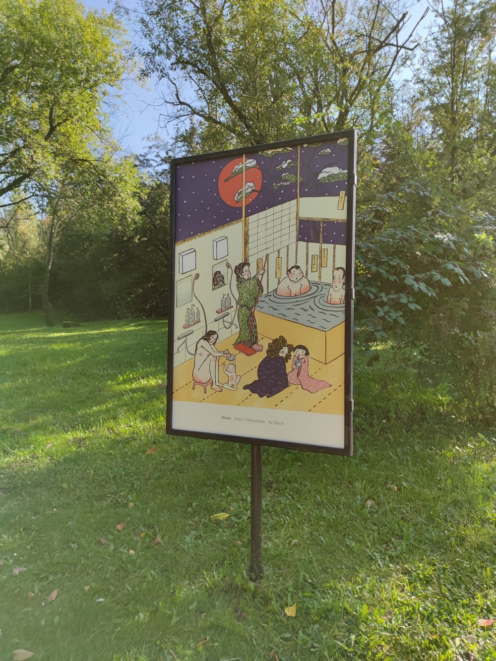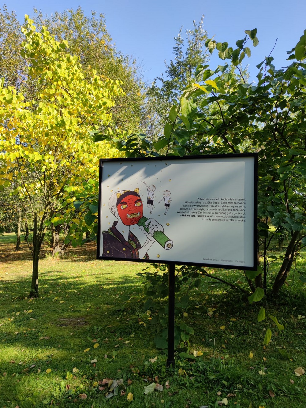 W jesiennej scenerii Śląskiego Ogrodu Botanicznego w Mikołowie można podziwiać wielkoformatową wystawę plenerową ilustracji przygotowanych przez Ka Mochi do książki „Dzieci z Hamamatsu”.