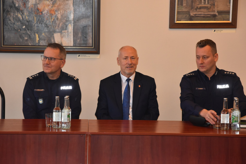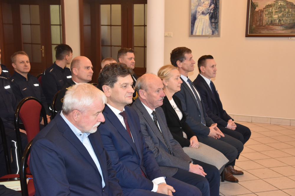 Starosta Mirosław Duży podziękował policjantkom i policjantom za ostatni rok służby, życzył bezpiecznej pracy i takich wynagrodzeń, by funkcjonariusze nie chcieli odchodzić ze służby, a wakatów było jak najmniej.