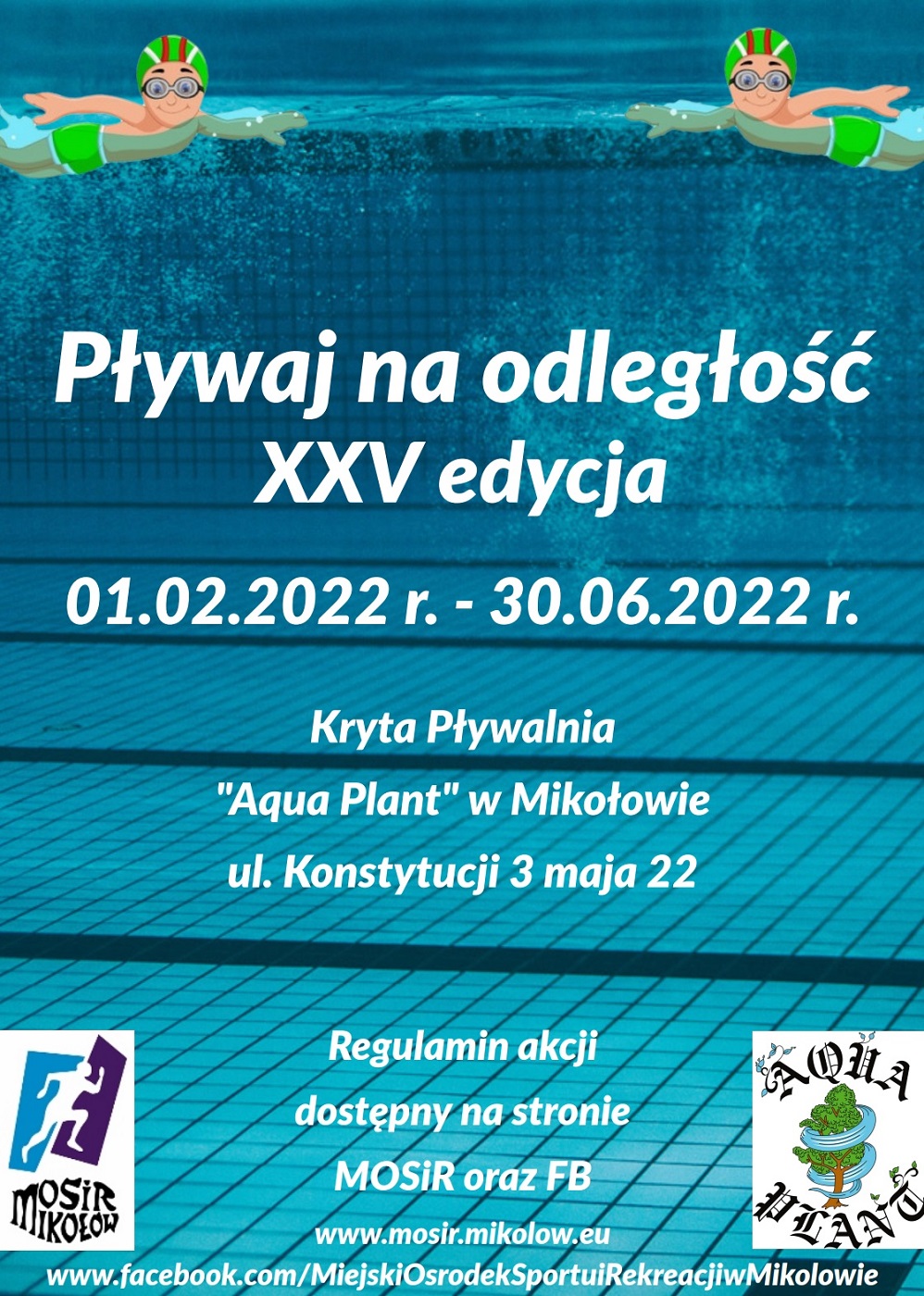 Jednocześnie przypominamy, że 1 lutego br. rozpoczęła się kolejna (XXV) edycja akcji „Pływaj na odległość”. Szczegóły znajdują się w regulaminie akcji.