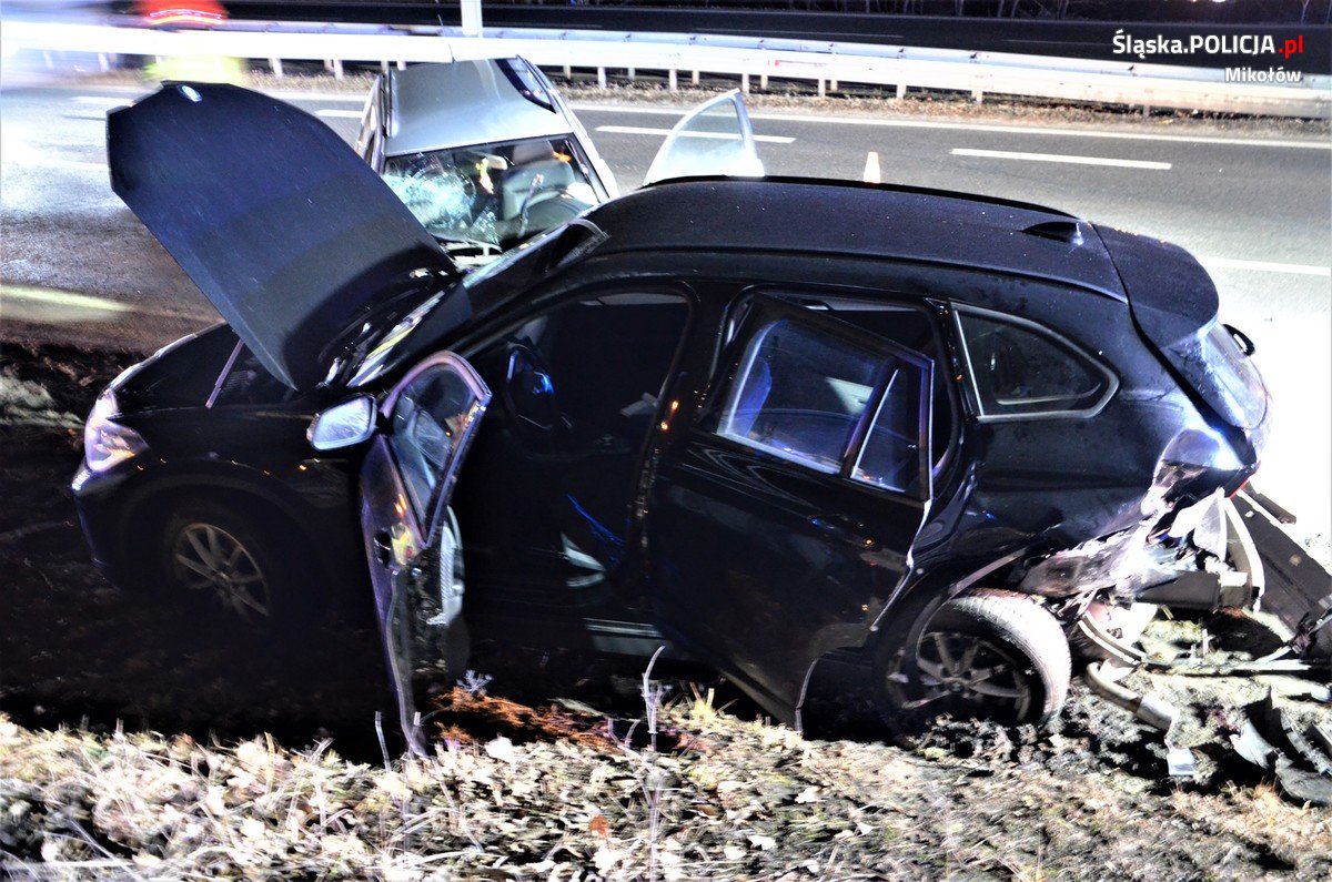 Policjanci mikołowskiej komendy wyjaśniają przebieg zdarzenia drogowego, do którego doszło na mikołowskim odcinku drogi krajowej numer 44. Kierowca jednego z samochodów biorących udział w groźnie wyglądającej kolizji miał w organizmie 3 promile alkoholu.Według wstępnych ustaleń to właśnie on nie dostosował prędkości do panujących warunków drogowych i uderzył w tył BMW, które chwilę wcześniej prawidłowo włączyło się do ruchu.